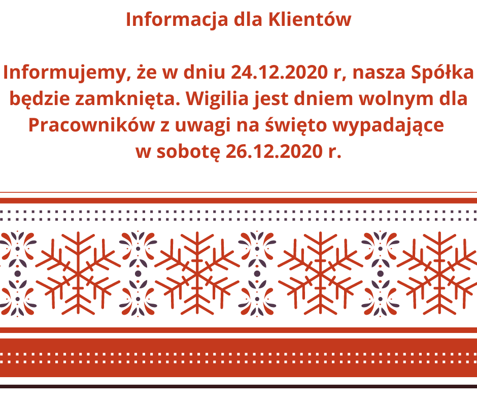 Informacja dla Klientów – 24.12.2020 r. – Spółka zamknięta.