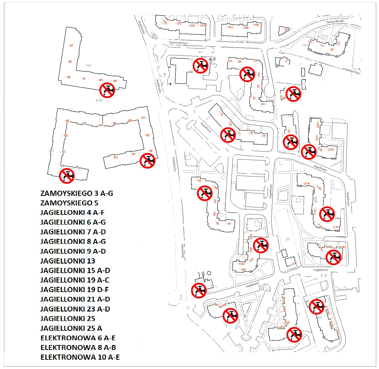 W związku z pilnymi pracami remontowymi na sieci wodociągowej przy ul. Anny Jagiellonki, związanymi z przełączeniami nowej sieci, w dniu 24.02.2025 r. nastąpi przerwa w dostawie wody wg załączonego schematu. Przerwa w dostawie wody potrwa od godziny 8 do 14. Za powstałe utrudnienia przepraszamy.
